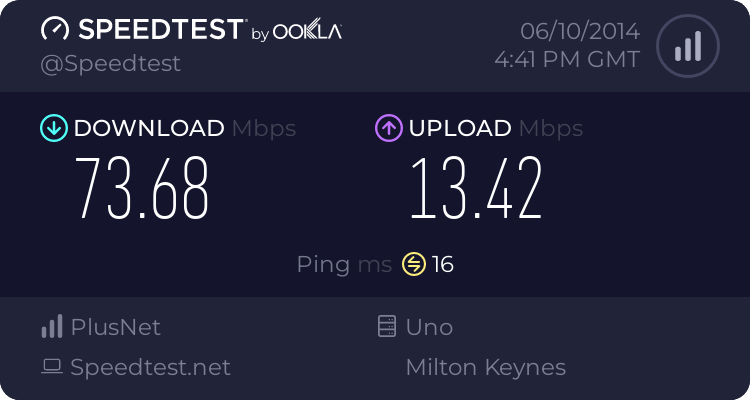 Using a speedtest server inside the isp or bt wholesale will be less representative.