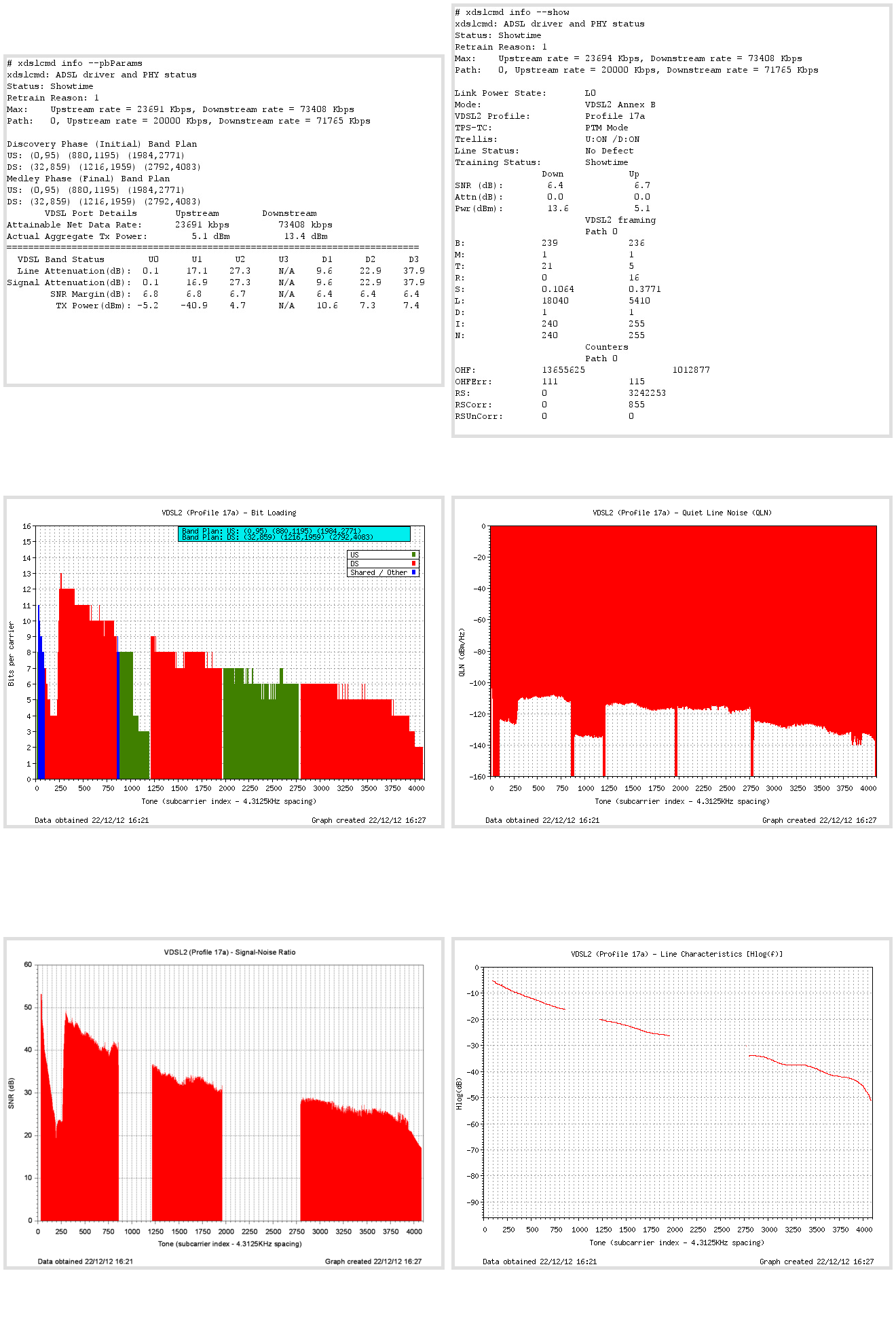 Initially I had a 110meg attainable sync and I thought I would be set for a lifetime 80meg sync with that kind of buffer, upstream also looked pretty healthy at 36mbit.  I changed to 90mbit attainable the day after I unlocked my modem and the above graph was taken on that.  This morning I had another large drop down to 73mbit attainable (which of course has now lowered my sync below 80mbit) and upstream attainable is now just 23mbit.  Ok we all know crosstalk happens on vdsl2 and also documents I have read from vdsl vendors is that crosstalk can also be very severe at around 40% of lost dsl signal which is why vectoring is been developed to combat that, my concern however is reports from other users is when a neighbour gets vdsl installed they might lose a few mbit of attainable sync each time and the 40% accumulates over dozens of installs.  For me I seem to have lost a whopping 40mbit of attainable speed in 2 weeks and for 2 installs.